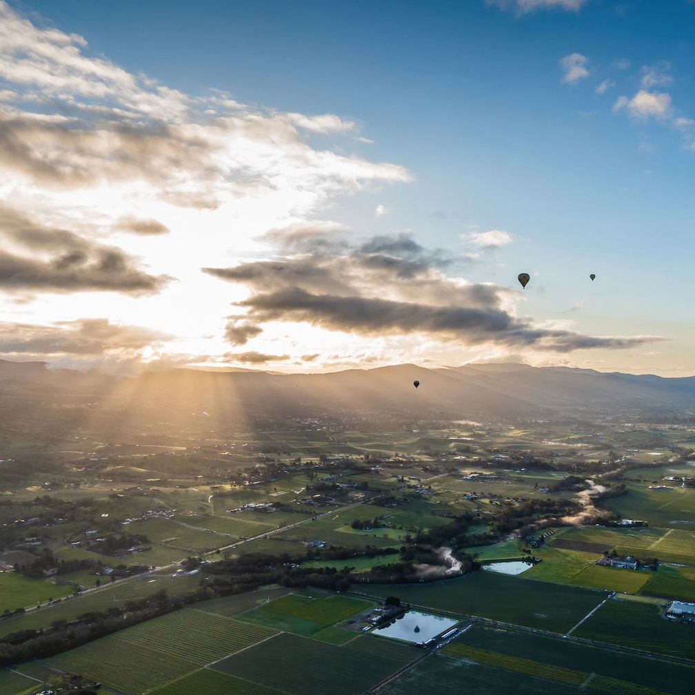 As your hot air balloon ascends, the winds will carry you gently above corridors of grapes and between the mountains of one of the most magnificent valleys on Earth.